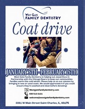 West Gate Family Dentistry is helping out Jewel-Osco in Partnership with the Chicago Bears to keep our communities families warm this cold winter. Please help us on our mission by bringing in new or used coats. We would appreciate it if you could ensure they're washed and clean before donating!